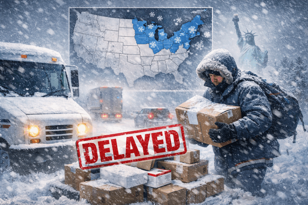 Winter weather in the following regions, may impact the processing, transportation, and delivery of mail and packages.